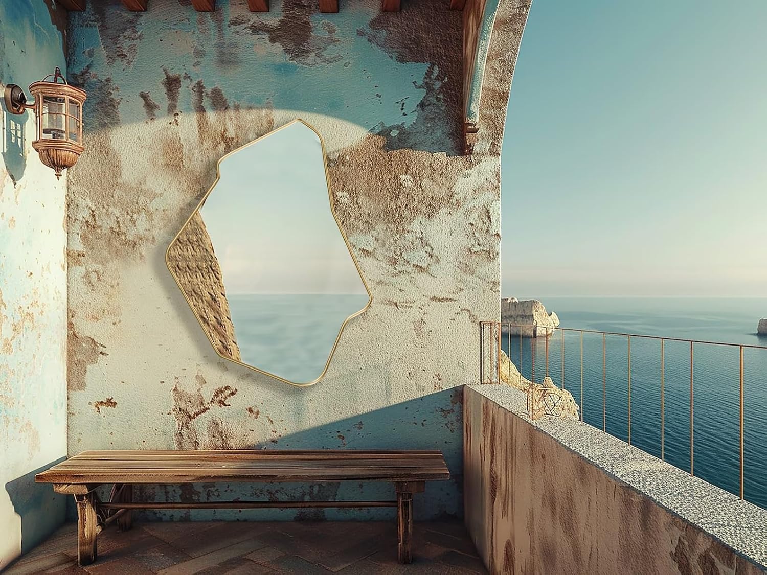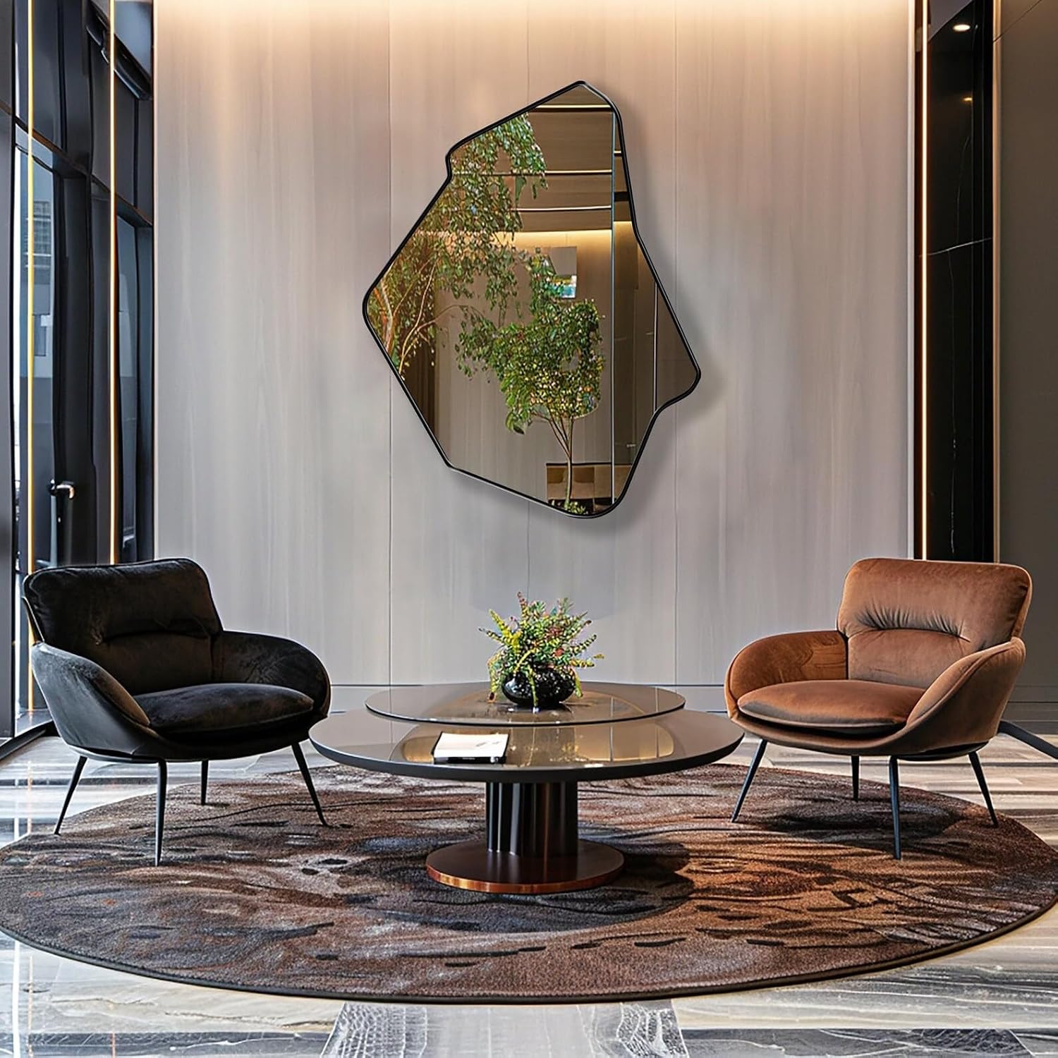 VERSATILE ART PIECE: Perfect for use in a variety of settings, including bathrooms, living rooms, and offices, this asymmetrical wall mirror serves as both a functional dressing mirror and a decorative statement piece.