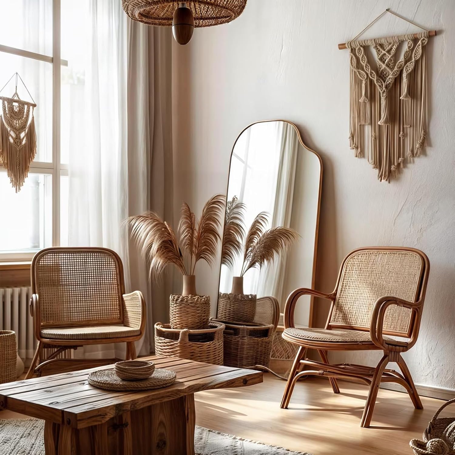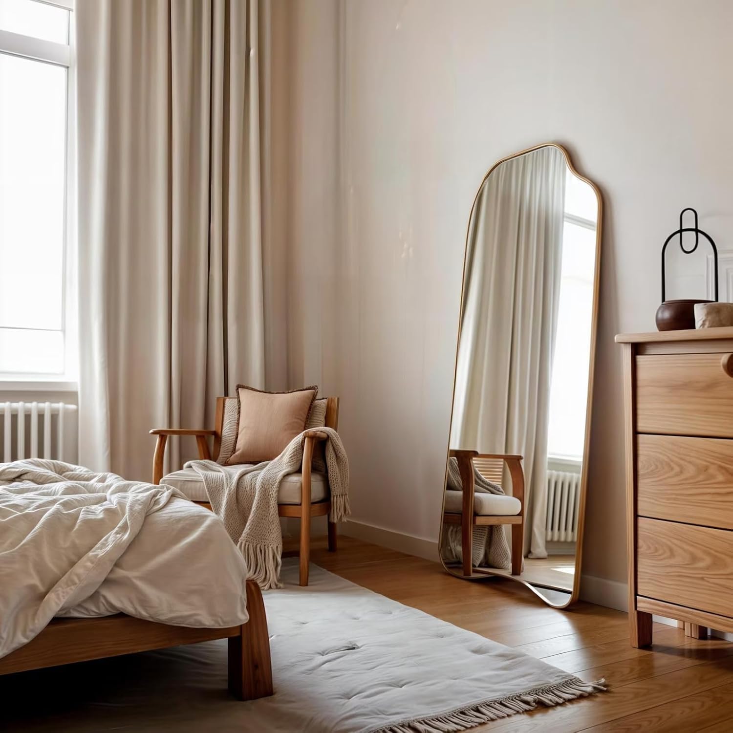 IRREGULAR WOODEN FRAME: Crafted with a distinctive wooden frame, this modern mirror combines natural beauty with irregular contours, enhancing its visual appeal and complementing mid-century decor.