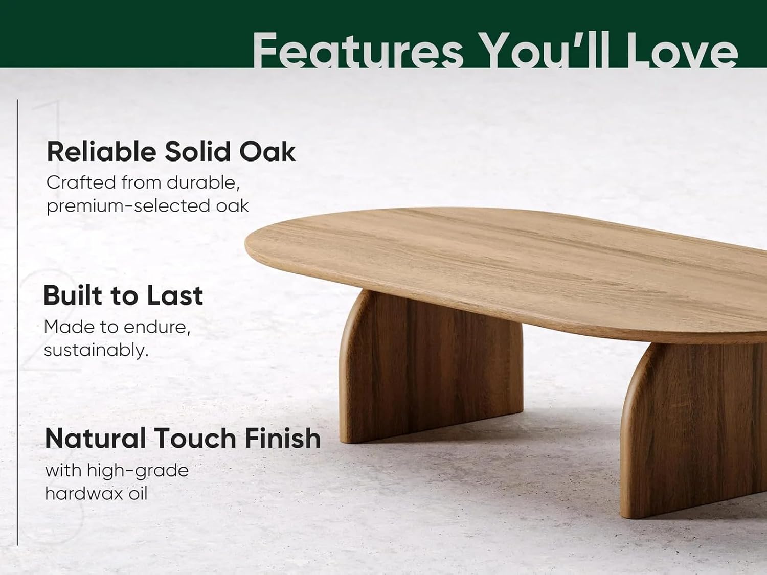 SOLID OAK CRAFTSMANSHIP : Made from premium solid wood, this modern coffee table adds a touch of natural elegance to your living room, bedroom or office.