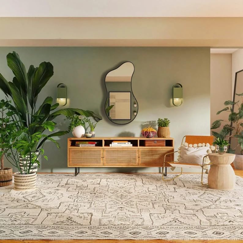 - IRREGULAR WOODEN FRAME: Crafted with a distinctive wooden frame, this modern mirror combines natural beauty with irregular contours, enhancing its visual appeal and complementing mid-century decor.